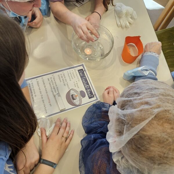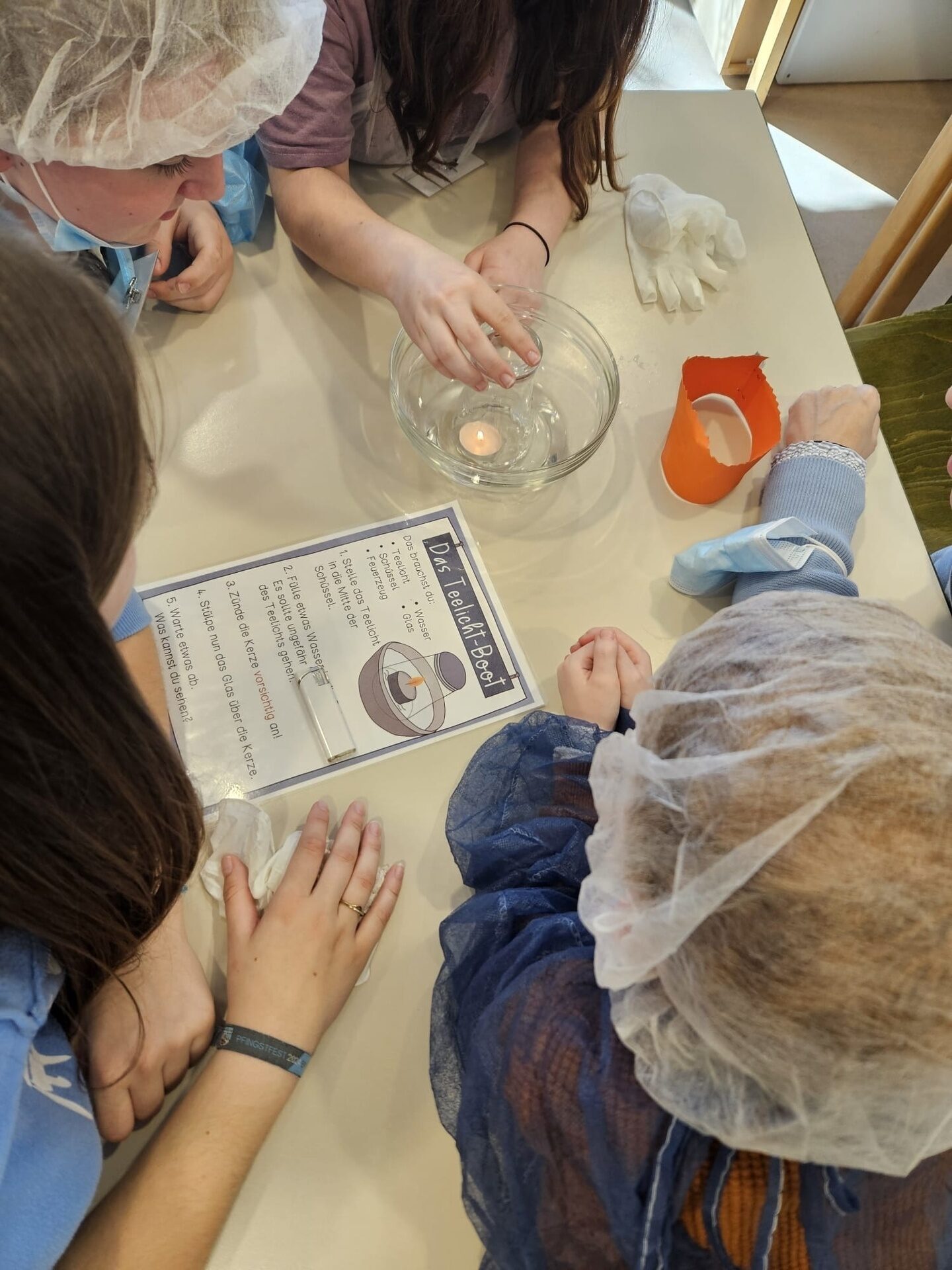In der „Experimente-Gruppe“ konnten die Teilnehmer unter Anleitung verschiedene Experimente durchführen und dabei spielerisch naturwissenschaftliche Regeln und Ursache-Wirkung-Zusammenhänge kennenlernen.