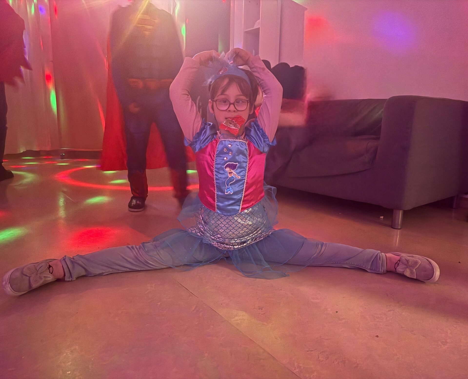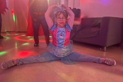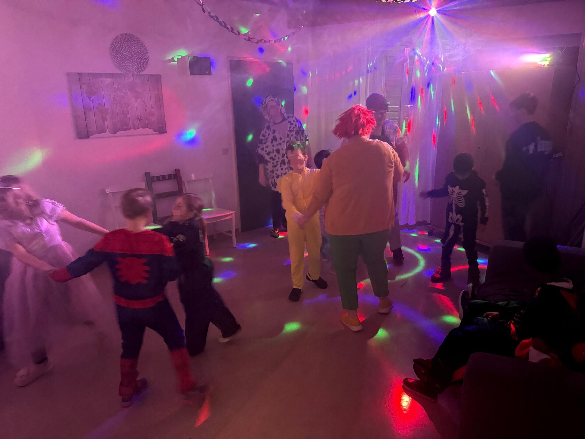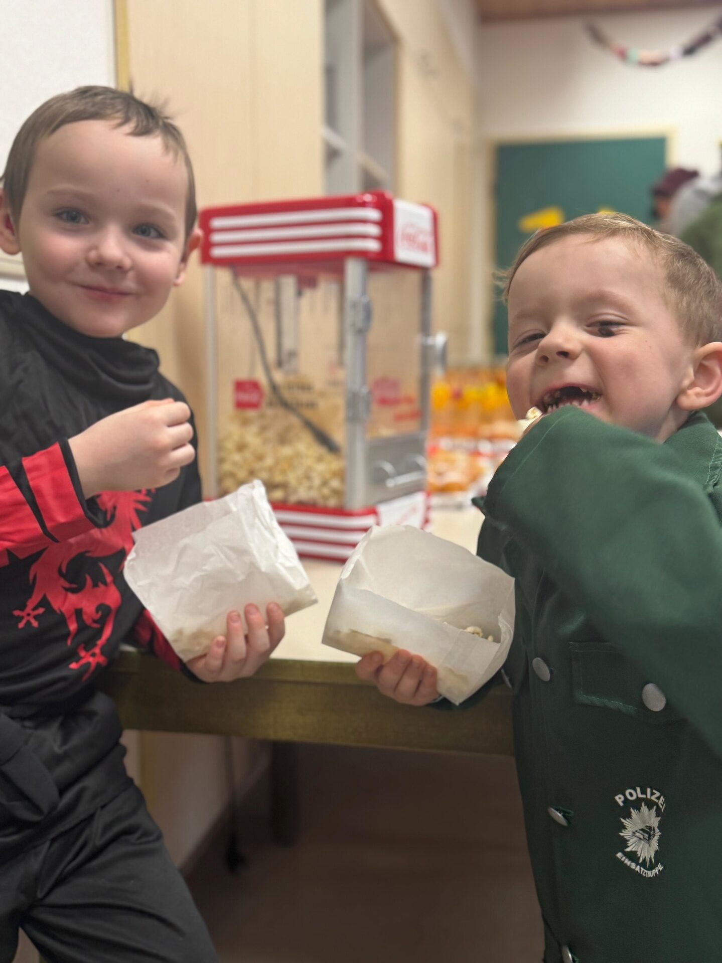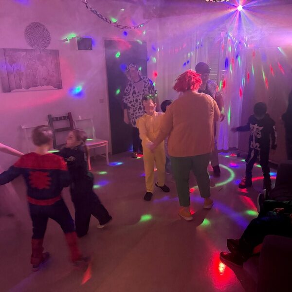Durch bunte Luftballons, Girlanden und eine peppige Faschingsmusik kam sofort die passende Stimmung auf. Der Gruppenraum der Gruppe 5 verwandelte sich in eine Disco mit Lichteffekten und einer Tanzfläche, auf der die kleinen und großen Faschingsbegeisterten das Tanzbein schwangen.